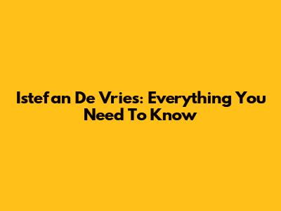 Istefan De Vries: Everything You Need To Know