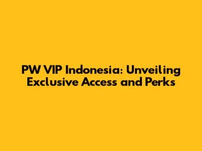 What is PW VIP Indonesia? Decoding the Exclusive World