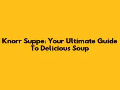 Knorr Suppe: Your Ultimate Guide To Delicious Soup