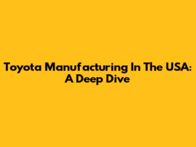 Toyota Manufacturing In The USA: A Deep Dive