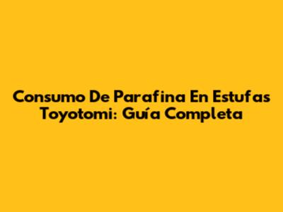 Consumo De Parafina En Estufas Toyotomi: Guía Completa