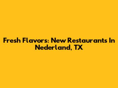 Fresh Flavors: New Restaurants In Nederland, TX
