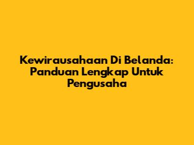 Kewirausahaan Di Belanda: Panduan Lengkap Untuk Pengusaha