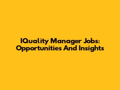 IQuality Manager Jobs: Opportunities And Insights