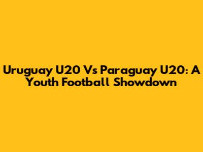 Uruguay U20 Vs Paraguay U20: A Youth Football Showdown