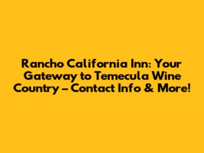 Hey everyone, planning a trip to the beautiful Temecula Valley? Awesome choice! If you're considering a stay at the Rancho California Inn, you're in for a treat. It's a fantastic spot, nestled right in the heart of wine country. But before you pack your bags, let's get you all the info you need. Let’s dive into everything from the Rancho California Inn phone number to the amenities and why this place is a great choice for your Temecula adventure.