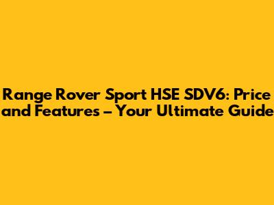 Unveiling the Range Rover Sport HSE SDV6 Price: What to Expect