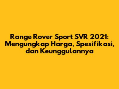 Range Rover Sport SVR 2021 adalah SUV berperforma tinggi yang menawarkan kombinasi unik antara performa, kemewahan, dan kemampuan off-road. Dengan mesin yang bertenaga, desain yang memukau, dan fitur-fitur canggih, SVR adalah pilihan yang menarik bagi mereka yang mencari pengalaman berkendara yang luar biasa. Memahami harga Range Rover Sport SVR 2021, spesifikasi, dan ulasannya adalah langkah penting dalam membuat keputusan pembelian. Pastikan untuk selalu melakukan pengecekan harga terbaru dan mempertimbangkan semua faktor yang relevan sebelum membuat keputusan akhir. Jika Anda mencari SUV yang mampu memberikan sensasi berkendara yang mendebarkan, kemewahan, dan kemampuan off-road yang luar biasa, Range Rover Sport SVR 2021 layak untuk dipertimbangkan.