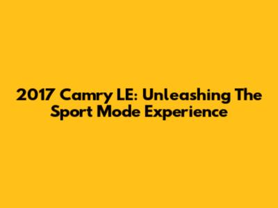 2017 Camry LE: Unleashing The Sport Mode Experience