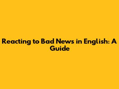 Reacting To Bad News In English: A Guide