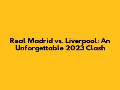 Hey sports fanatics! Let's dive deep into the Real Madrid vs. Liverpool face-off from 2023. It was a match that had everyone on the edge of their seats. The game was more than just a contest; it was a saga of grit, strategy, and sheer will. We're talking about two of the biggest names in the football world, going head-to-head. So, buckle up, because we're about to dissect every crucial moment, every dazzling play, and every heart-stopping twist of the 2023 showdown. This isn't just a recap, folks; it's a deep dive into the essence of what made this match so legendary. We’ll explore the tactical masterstrokes, the individual brilliance, and the overall narrative that unfolded during this epic battle. It was a clash that defined a season, a clash that left an indelible mark on football history, and a clash that continues to be discussed and analyzed by fans and pundits alike. Get ready to relive the passion, the drama, and the glory that was Real Madrid against Liverpool in 2023. This match was a testament to the beautiful game, showcasing the best of what football has to offer. The anticipation leading up to the game was immense, the atmosphere electric, and the performance on the pitch nothing short of spectacular. This wasn’t just a game; it was an experience. It was a story of two titans, each with their own legacy, each with their own ambitions, and each determined to claim victory. The match was a rollercoaster of emotions, full of near misses, incredible saves, and stunning goals that kept fans on the edge of their seats until the final whistle. The intensity of the competition was palpable, with both teams displaying their superior skills and unwavering determination. This encounter wasn't just about winning; it was about pride, passion, and the pursuit of greatness. It was a display of skill, strategy, and sheer determination that highlighted the sport's unpredictability and excitement.
