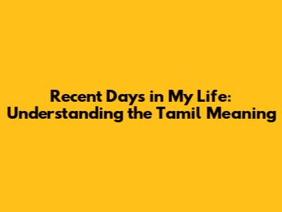 Hey guys! Ever found yourself wondering about the deeper meaning behind everyday phrases? Let’s dive into understanding the Tamil meaning of "recent days in my life." Whether you're a language enthusiast, a student, or just curious, breaking down this phrase can offer some cool insights. So, buckle up, and let's explore the world of Tamil and how it adds flavor to our understanding of time and experiences.