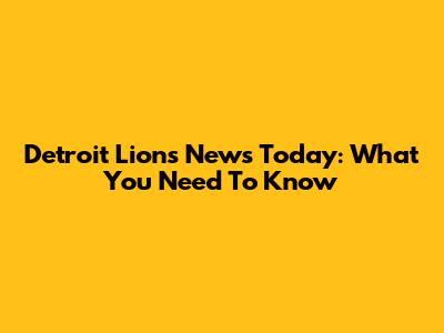 Detroit Lions News Today: What You Need To Know