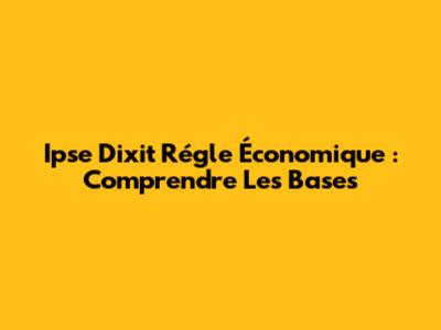 Ipse Dixit Régle Économique : Comprendre Les Bases