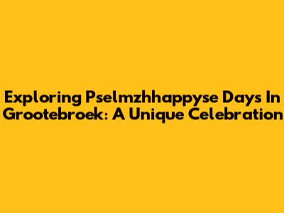 Exploring Pselmzhhappyse Days In Grootebroek: A Unique Celebration