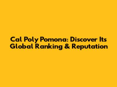 Cal Poly Pomona: Discover Its Global Ranking & Reputation