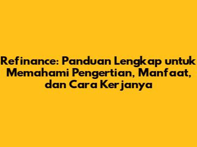 Refinance adalah istilah yang sering muncul dalam dunia keuangan, terutama bagi mereka yang memiliki pinjaman atau cicilan. Tapi, sebenarnya apa sih refinance itu? Kenapa banyak orang memilih untuk melakukan refinance? Artikel ini akan membahas secara lengkap mengenai refinance, mulai dari pengertian, manfaat, cara kerja, hingga tips yang perlu diperhatikan. Jadi, buat kalian yang penasaran dan ingin tahu lebih banyak tentang refinance, simak terus artikel ini, ya!
