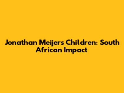 Jonathan Meijer's Children: South African Impact