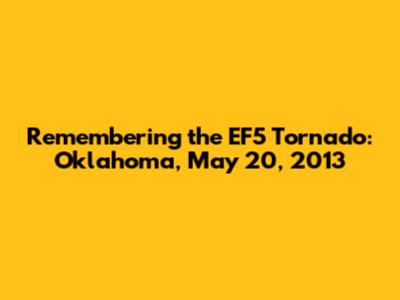 The EF5 tornado that struck Oklahoma on May 20, 2013, was a tragic event that caused immense devastation and loss. However, it also demonstrated the resilience and strength of the human spirit. The community came together to support one another, rebuild their lives, and learn from the experience. The lessons learned from the tornado have led to significant improvements in disaster preparedness and response, and they serve as a reminder of the importance of vigilance and preparedness in the face of extreme weather. As we remember the events of that day, let us honor the memory of those who were lost and celebrate the courage and determination of the survivors. Let us also continue to work together to create a safer and more resilient future for all. The EF5 tornado was a tragedy, but it was also a catalyst for positive change. By learning from the past, we can build a better future for ourselves and for generations to come. I hope that the content provided has helped you reflect on the events of the past, and has made a positive impact to your future.
