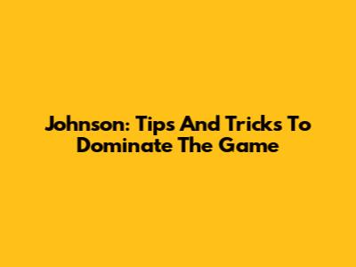 Johnson: Tips And Tricks To Dominate The Game
