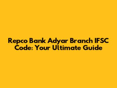 - RBI Website: The Reserve Bank of India (RBI) also maintains a database of all bank branches and their IFSC codes. You can visit the RBI website and search for the Repco Bank Adyar branch to find the IFSC code.