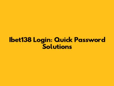 Ibet138 Login: Quick Password Solutions