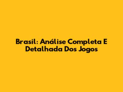 Brasil: Análise Completa E Detalhada Dos Jogos