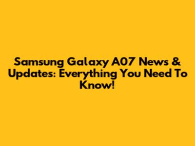 Samsung Galaxy A07 News & Updates: Everything You Need To Know!
