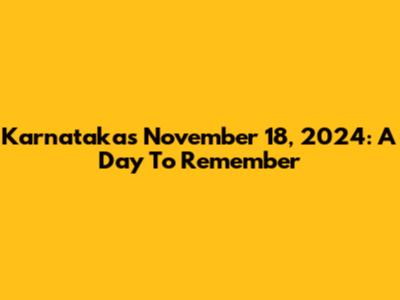 Karnataka's November 18, 2024: A Day To Remember