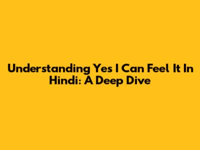 Understanding 'Yes I Can Feel It' In Hindi: A Deep Dive
