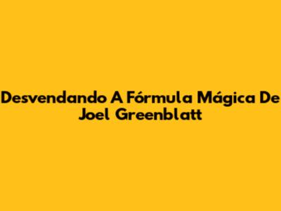Desvendando A Fórmula Mágica De Joel Greenblatt