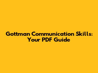 Gottman Communication Skills: Your PDF Guide