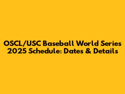 OSCL/USC Baseball World Series 2025 Schedule: Dates & Details