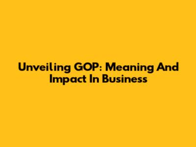 Unveiling GOP: Meaning And Impact In Business