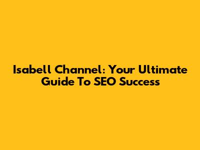 Isabell Channel: Your Ultimate Guide To SEO Success