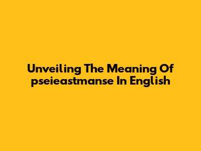 Unveiling The Meaning Of 'pseieastmanse' In English