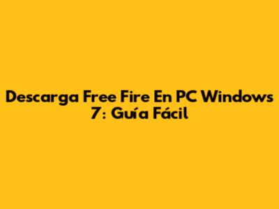 Descarga Free Fire En PC Windows 7: Guía Fácil