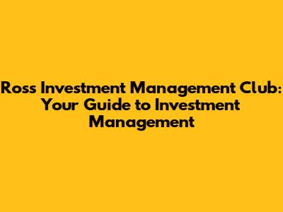 Are you looking to dive deep into the world of finance and investment? Then you've come to the right place! In this article, we're going to explore everything you need to know about the Ross Investment Management Club, a fantastic resource for students passionate about investment management. Whether you're a seasoned pro or just starting out, this guide is designed to give you a comprehensive overview of what the club offers, how to get involved, and why it's a great opportunity for anyone interested in pursuing a career in finance. So, buckle up and let's get started!
