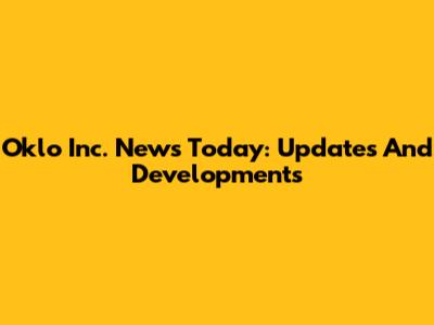 Oklo Inc. News Today: Updates And Developments
