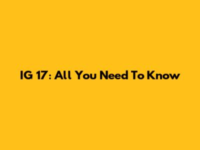 IG 17: All You Need To Know