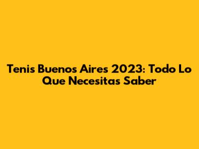 Tenis Buenos Aires 2023: Todo Lo Que Necesitas Saber