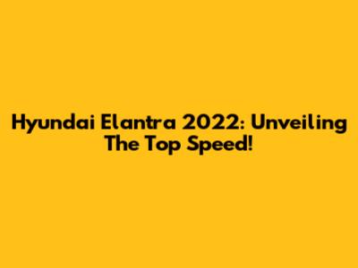 Hyundai Elantra 2022: Unveiling The Top Speed!