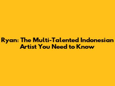 Ryan: The Multi-Talented Indonesian Artist You Need To Know
