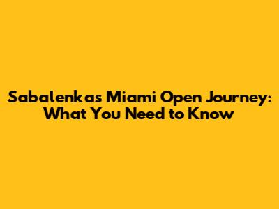 Sabalenka's Miami Open Journey: What You Need To Know