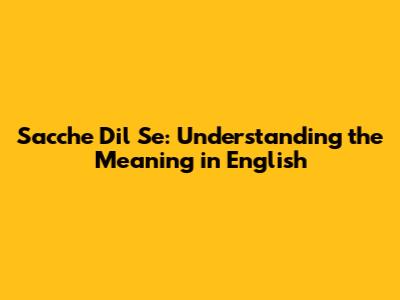 What Does "Sacche Dil Se" Really Mean?