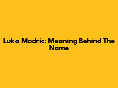 Luka Modric: Meaning Behind The Name