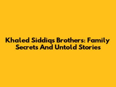 Khaled Siddiq's Brothers: Family Secrets And Untold Stories