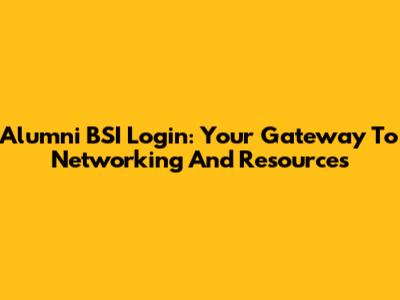 Alumni BSI Login: Your Gateway To Networking And Resources
