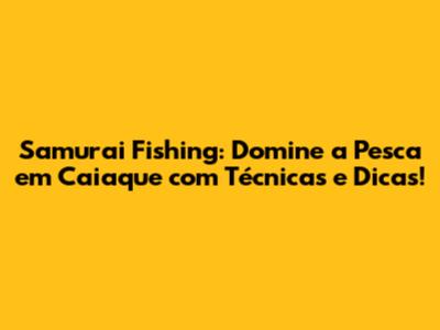 Técnicas Avançadas de Pesca em Caiaque: Dicas Samurai Fishing
