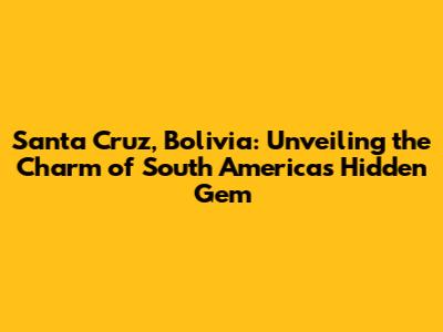 Hey there, travel enthusiasts! Ready to discover a city that's bursting with life, culture, and adventure? Let's dive headfirst into Santa Cruz, Bolivia, a vibrant city nestled in the heart of South America. This place is a real treat, offering a unique blend of modern amenities and traditional charm. We'll explore everything from its bustling markets and lush green spaces to its rich history and mouthwatering cuisine. So, grab your virtual passport, and let's get exploring! This article will be your ultimate guide to Santa Cruz, ensuring you're well-equipped to experience all it has to offer. Santa Cruz is a city that often flies under the radar for many travelers, overshadowed by the more famous destinations of South America. But trust me, guys, this is a mistake! Santa Cruz has so much to offer, from its lively culture and stunning natural beauty to its affordability and friendly locals. The city's rapid growth has also led to a fantastic infrastructure, making it easy to get around and enjoy all the city has to offer. Whether you're a seasoned globetrotter or a first-time adventurer, Santa Cruz promises an unforgettable experience. So, buckle up; we're about to embark on a journey that will open your eyes to the wonders of Santa Cruz, a city that perfectly encapsulates the spirit of South America!